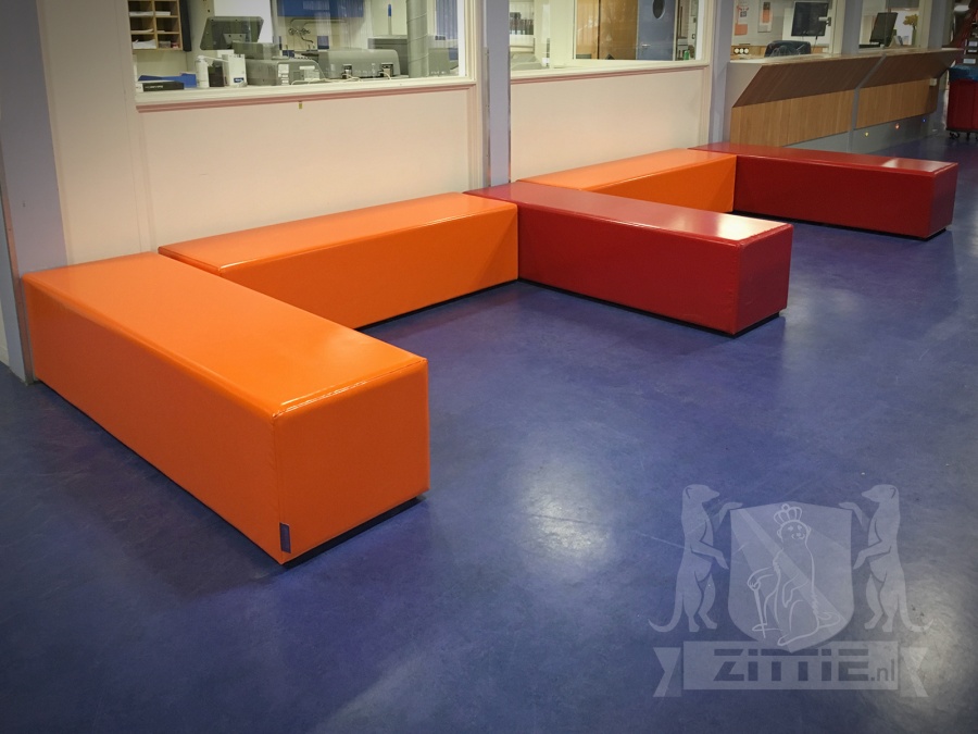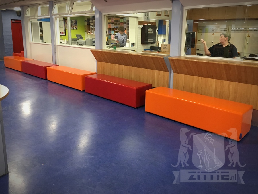 In samenwerking met Omnia 4 Office Projectinrichters hebben we 7 lange hockerbanken geleverd, variërend van 170 tot 225 cm, bekleed met liefst 900 grams zeildoek. De kleuren oranje, rood en lichtgroen sluiten mooi aan bij de reeds gekozen kleurstelling voor de inrichting. In navolging van de hockerbanken, zijn ook enkele hockers besteld.